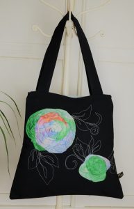 Bolso de tela y flores de seda con bordado, cierre de cremallera.