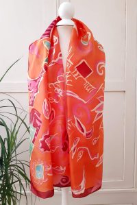 Fular de seda pintado a mano.